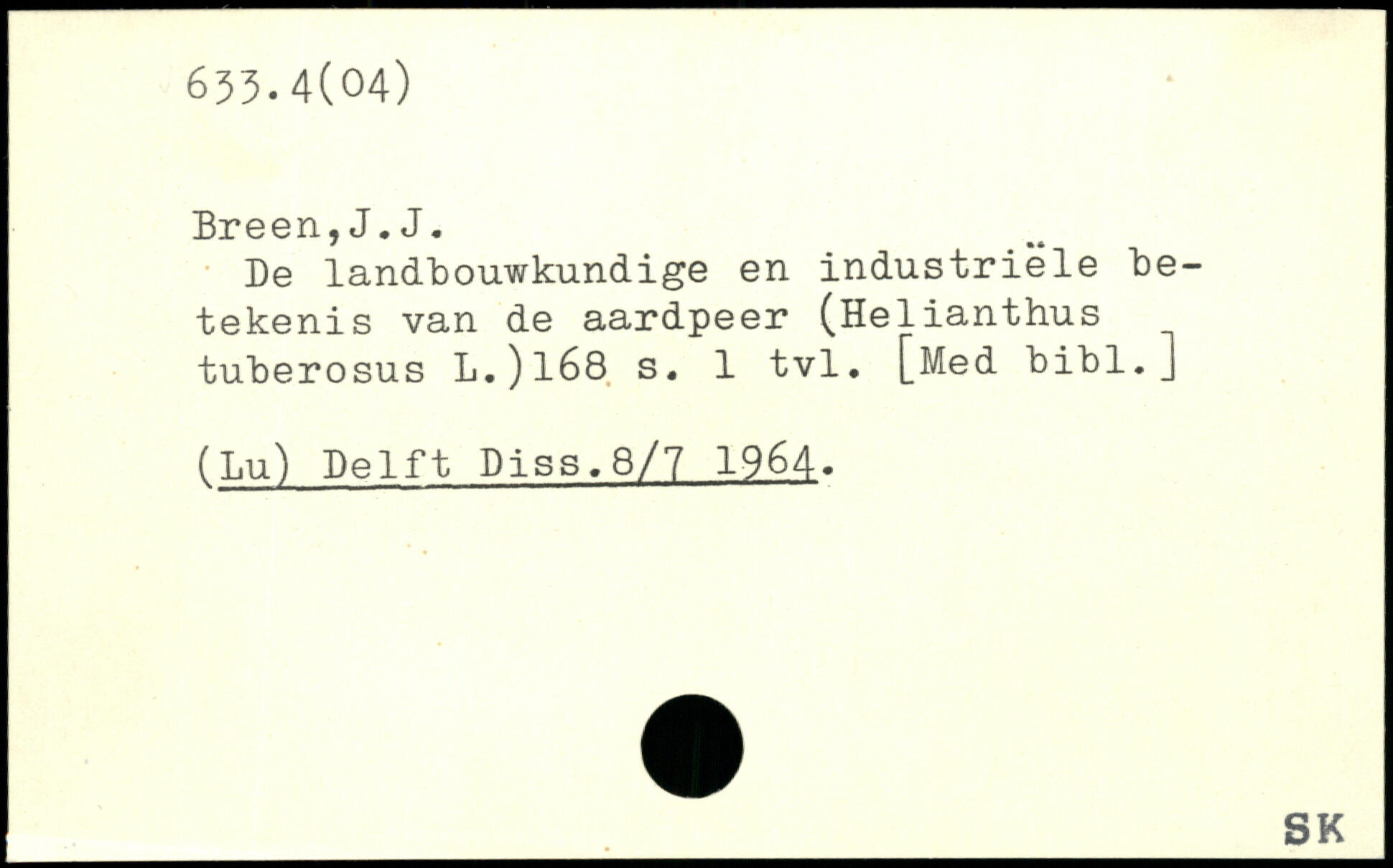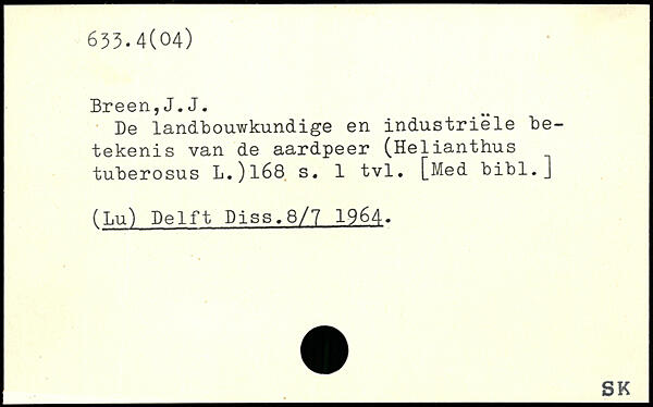 Be landbouwkundige en industriele be-tekenis van de aardpeer (Helianthus tuberosus L.)l