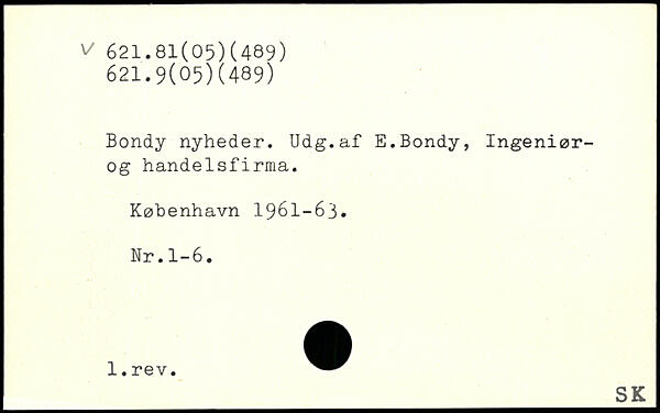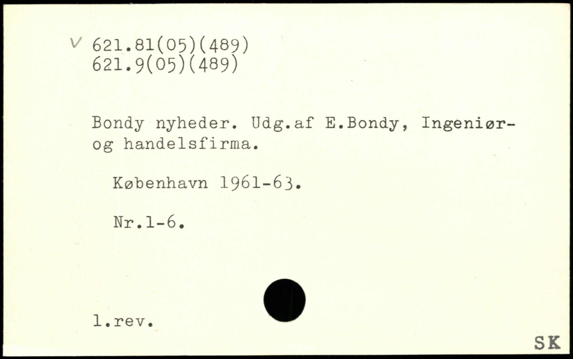 Bondy nyheder. Udg.af E.Bondy, Ingeniør-og handelsfirma.