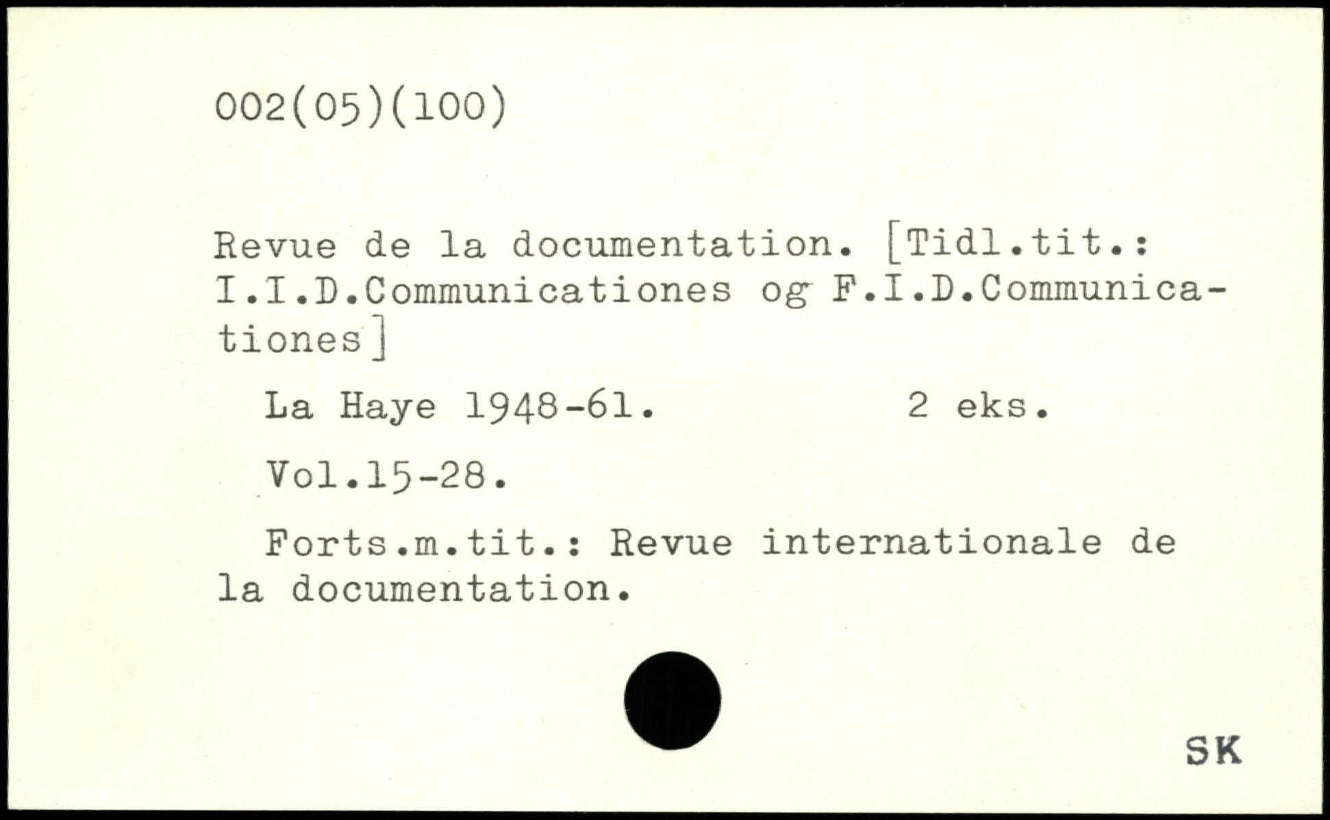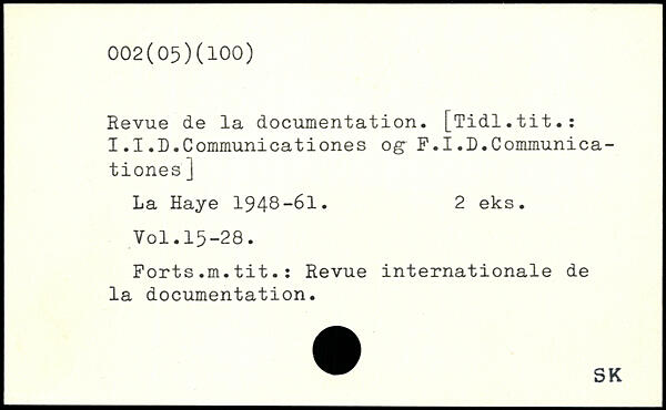 Revue de la documentation. [Tidl.tit.: I.I.D.Communicationes og F.I.D.Communica-tiones]