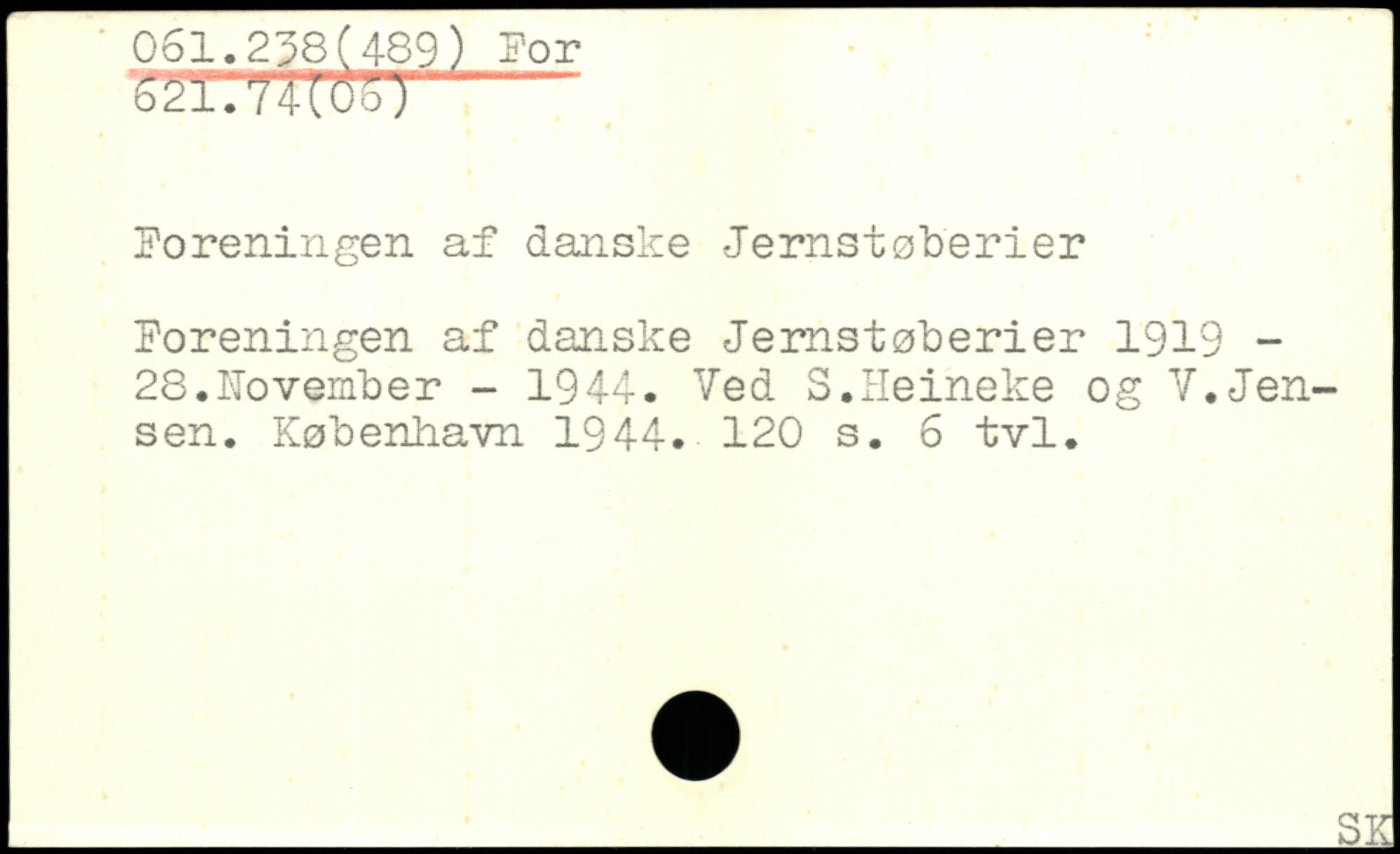 Poreningen af danske Jernstøberier Poreningen af danske Jernstøberier 1919 -28.Hovember - 1944. Ved S.Heineke og V.Jensen.