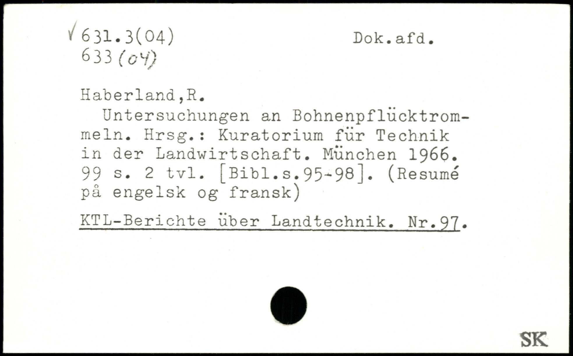 Untersuchungen an Bohnenpflücktrom-meln. Hrsg.: Kuratorium für Technik in der Landwirtschaft.