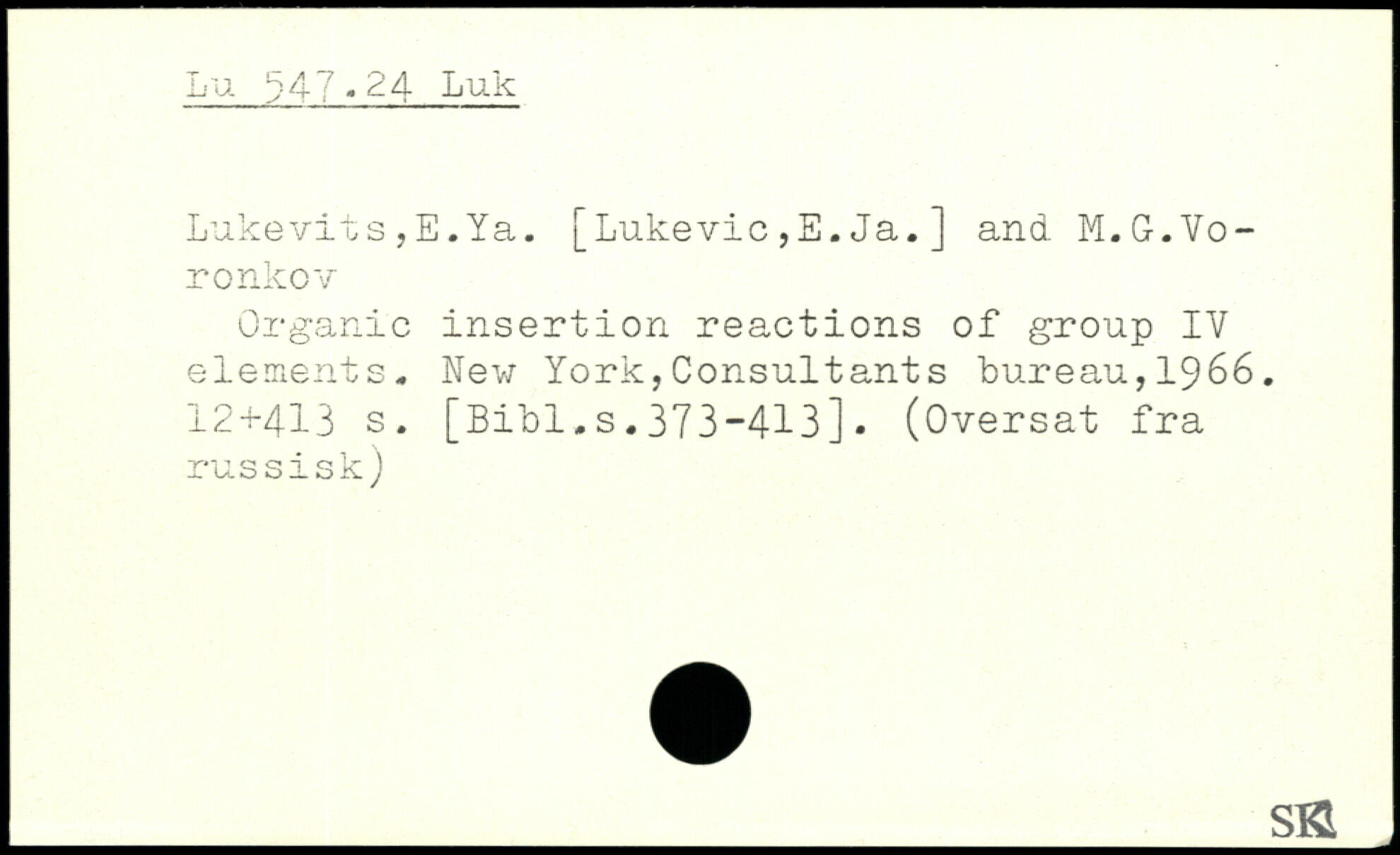 Lukevits,E.Ya. [Lukevic,E.Ja.] and M.G.Voronko v Organic insertion reactions of group IV elements.
