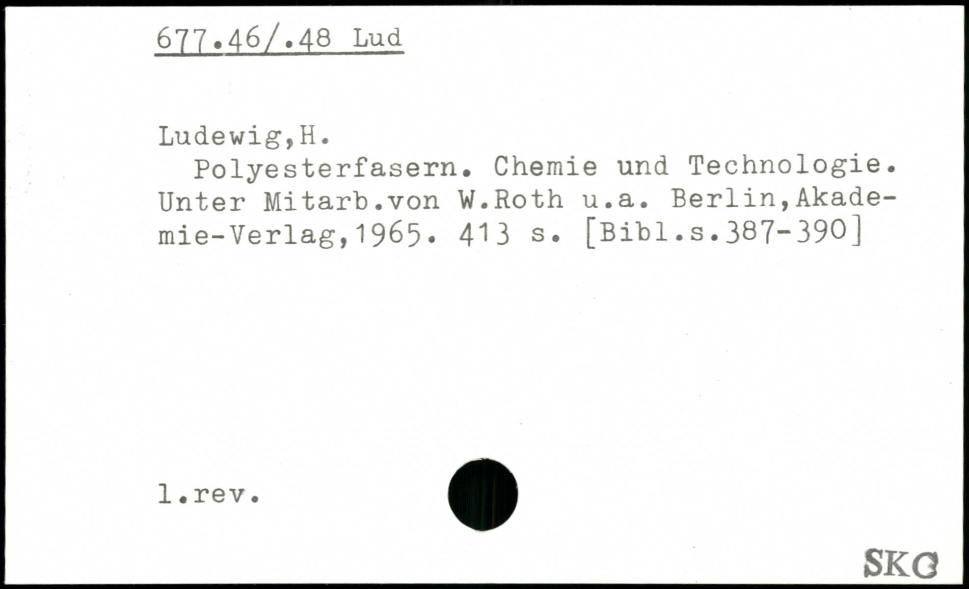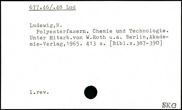 Polyesterfasern. Chemie und Technologie. Unter Mitarb.von W.Roth u.a. Berlin,Akademie- Verlag, 1 965