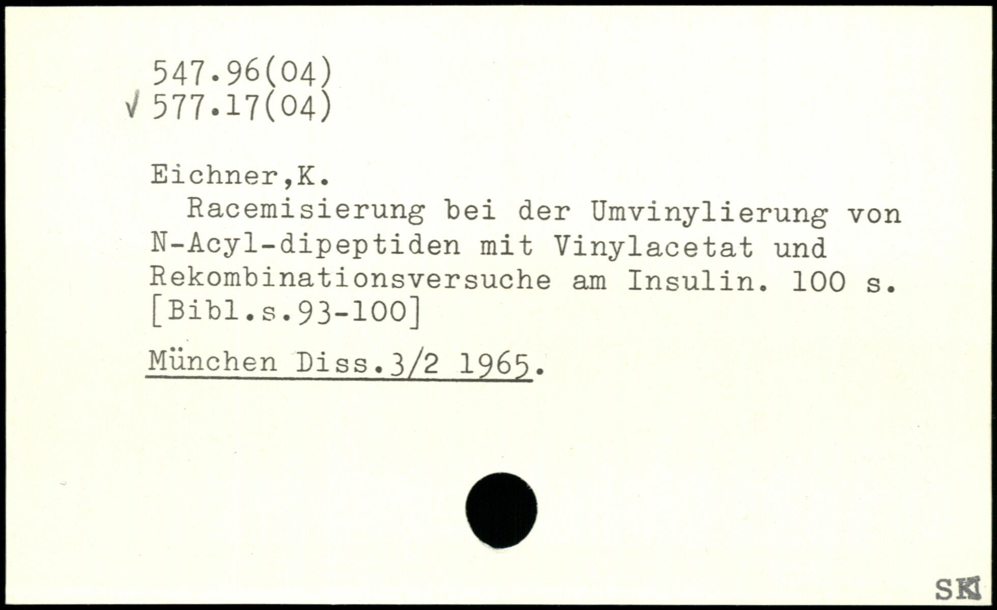 Racemisierung bei der Umvinylierung von N-Acyl-dipeptiden mit Vinylacetat und Rekombinationsversuche am Insulin.