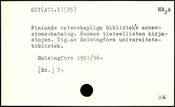 Finlands vetenskapliga biblioteks accessions-katalog. Suomen tieteellisten kirja-stojen. TJtg^av Helsingfors universitetsbibliotek.