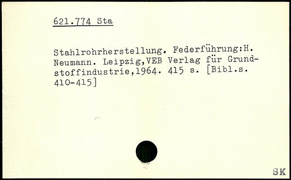 StahlrohrherStellung. Federführung:H. Neumann. Leipzig,VEB Verlag für Grundstof findustrie,19^4.