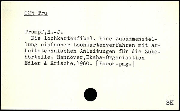 Die Lochkartenfibel. Eine Zusammenstellung einfacher Lochkartenverfahren mit arbeitstechnischen Anleitungen für die Zubehörteile.