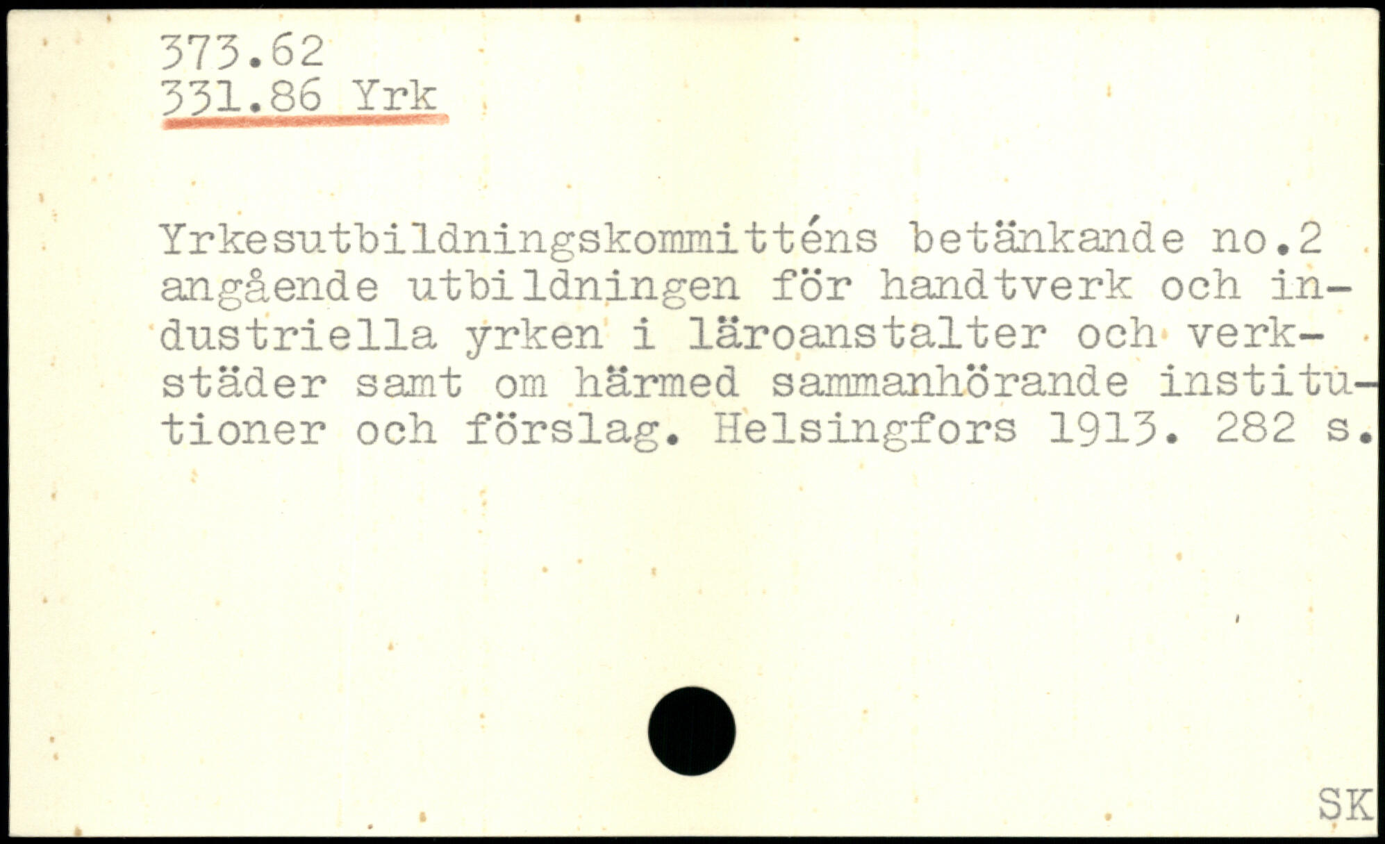 Yrkesutbildningskoimnitténs betänkande no.2 angående utbildningen för handtverk och industriella yrken i läroanstalter och verk-. städer samt om härmed sammanhörande institutioner och förslag.