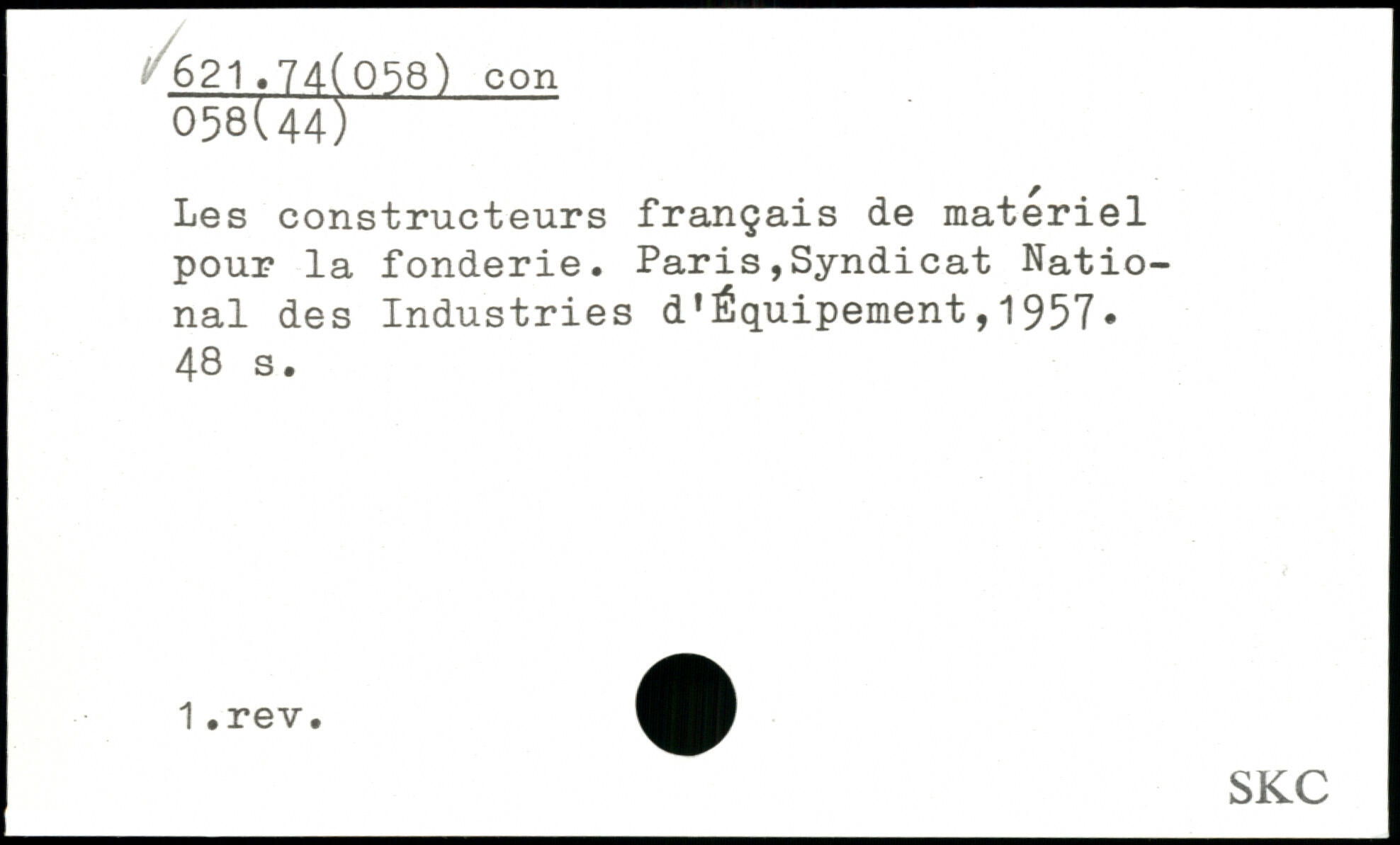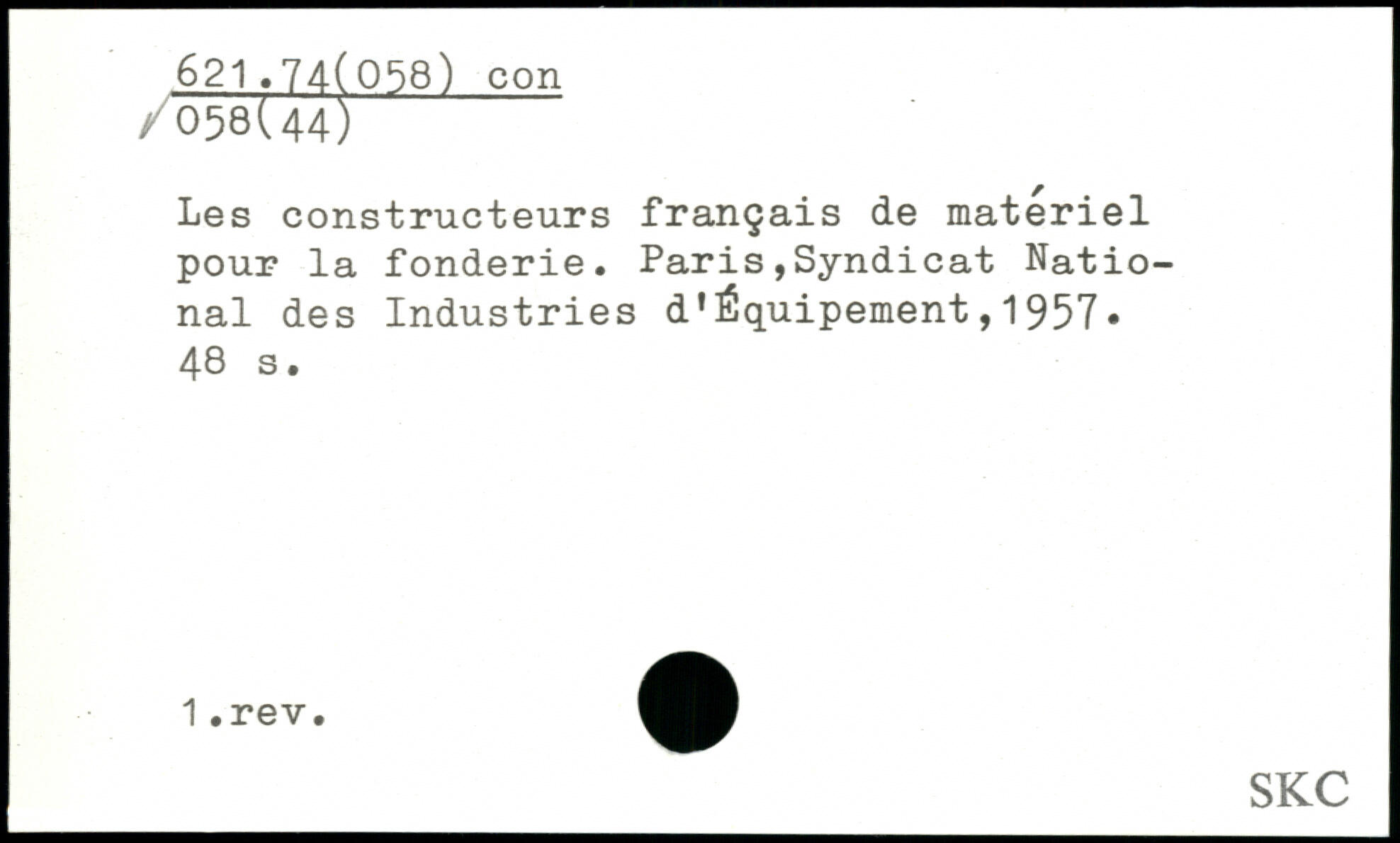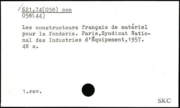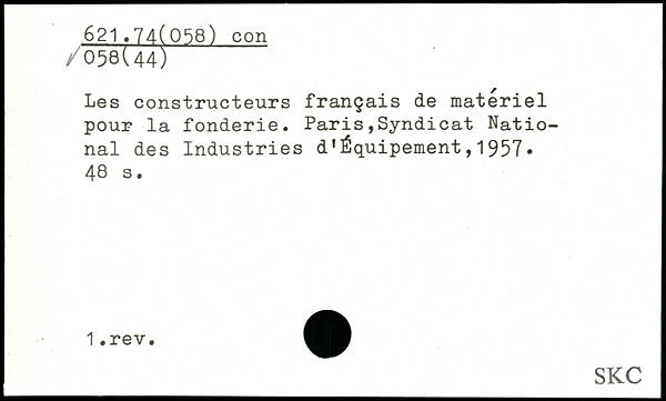Les constructeurs français de materiel pour la fonderie. Paris,Syndicat National des Industries d.Équipement,1957.
