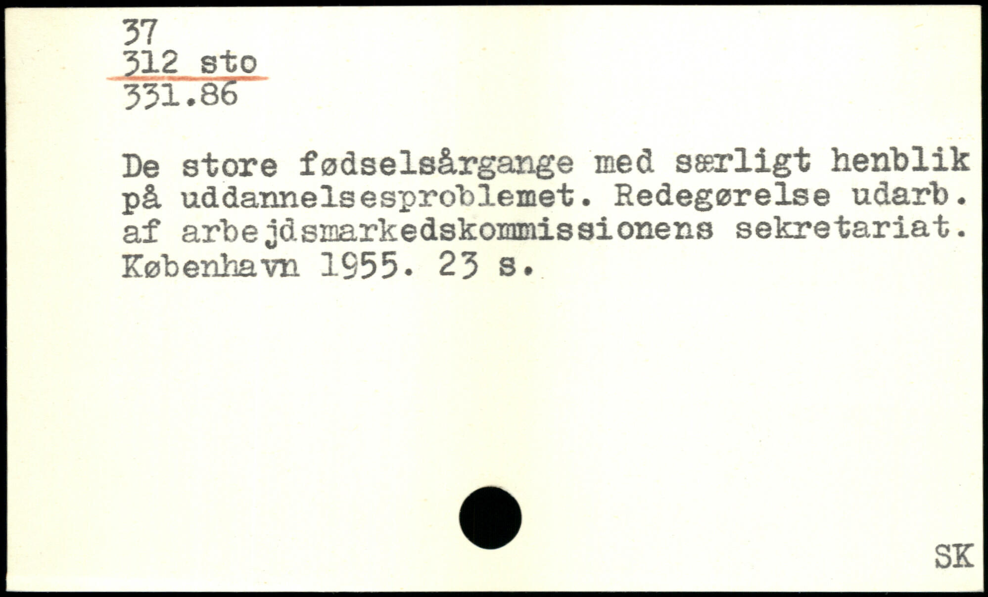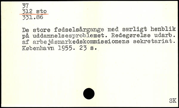 De store fødselsårgange med særligt henblik på uddannelsesproblemet. Redegørelse udarb. af arbeidsmarkedskommissionens sekretariat.