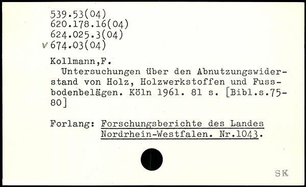 Untersuchungen uber den Abnutzungswider-stand von Holz, Holzwerkstoffen und Fuss-bodenbelagen.