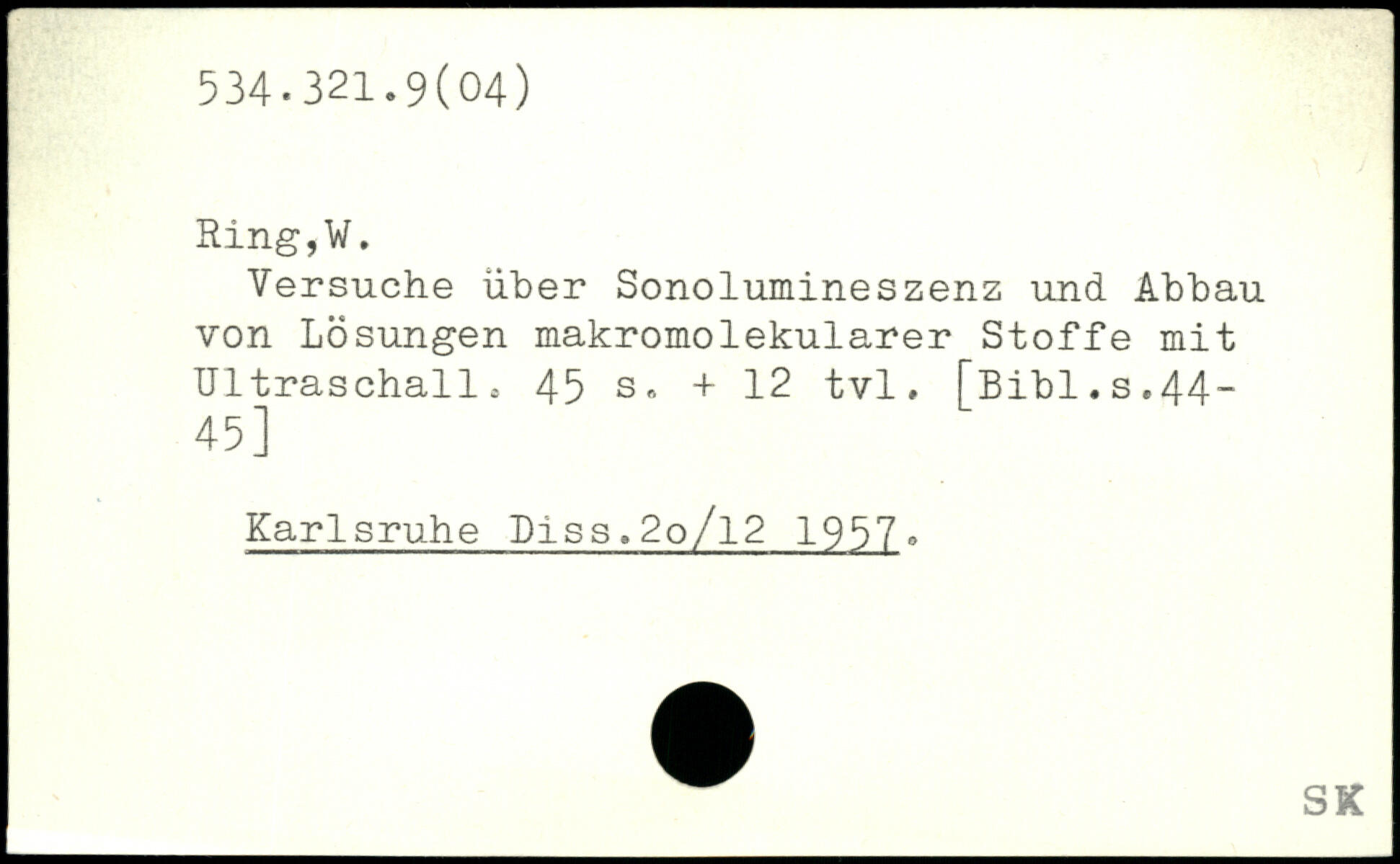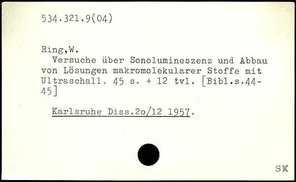 Versuche über Sonolumineszenz und Abbau von Lösungen makromolekularer Stoffe mit Ultraschalle