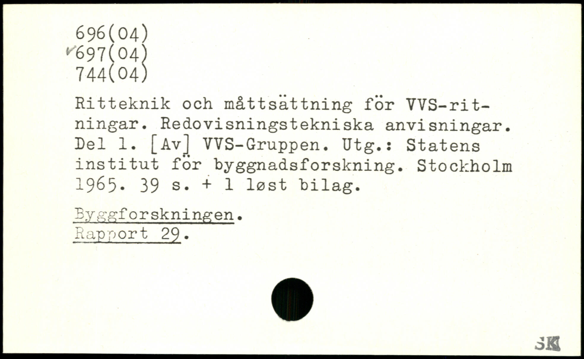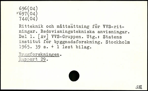 Ritteknik och mått sättning för VVS-rit-ningar. Redovisningstekniska anvisningar. Del 1. [Av] VVS-Gruppen. Utg.: Statens institut för byggnadsforskning.