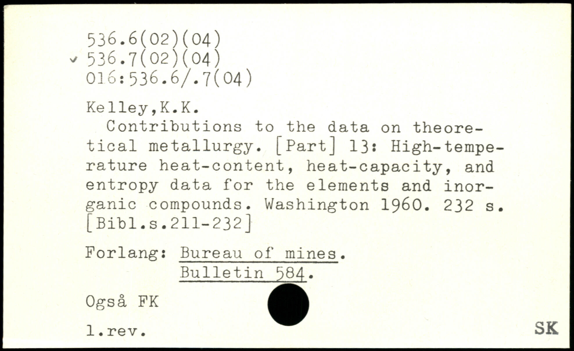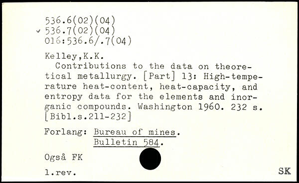 Contributions to the data on theoretical metallurgy. [Part] 13: High-tempe-rature heat-content, heat-capacity, and entropy data for the elements and inorganic compounds.