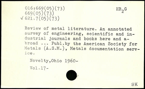Review of metal literature. An annotated survey of engineering, scientific and industrial journals and books here and a-broad ,o