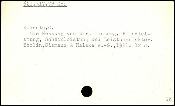 Die Messung von Wirkleistung, Blindleistung, Scheinleistung und Leistungsfaktor. Berlin,Siemens & Halske A.-G.,1921.