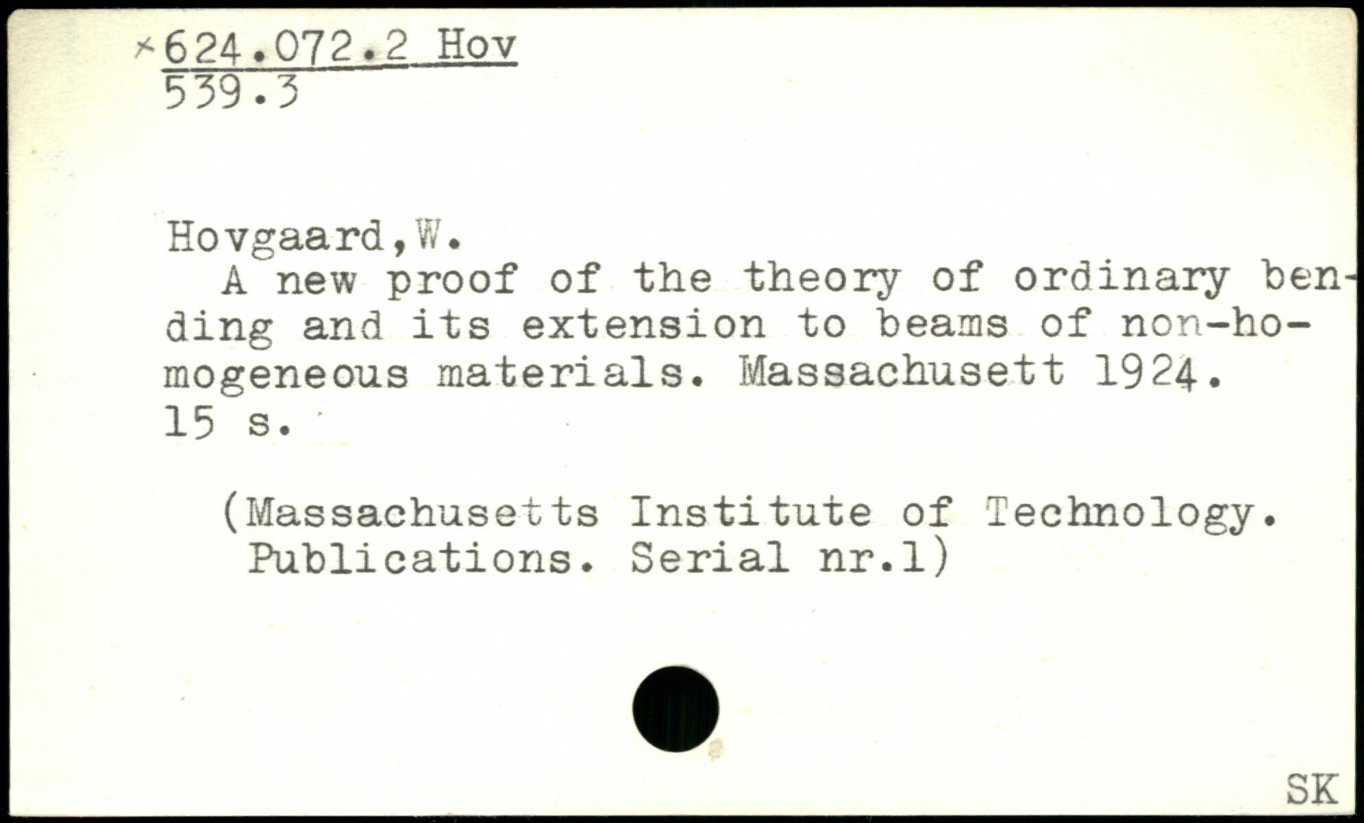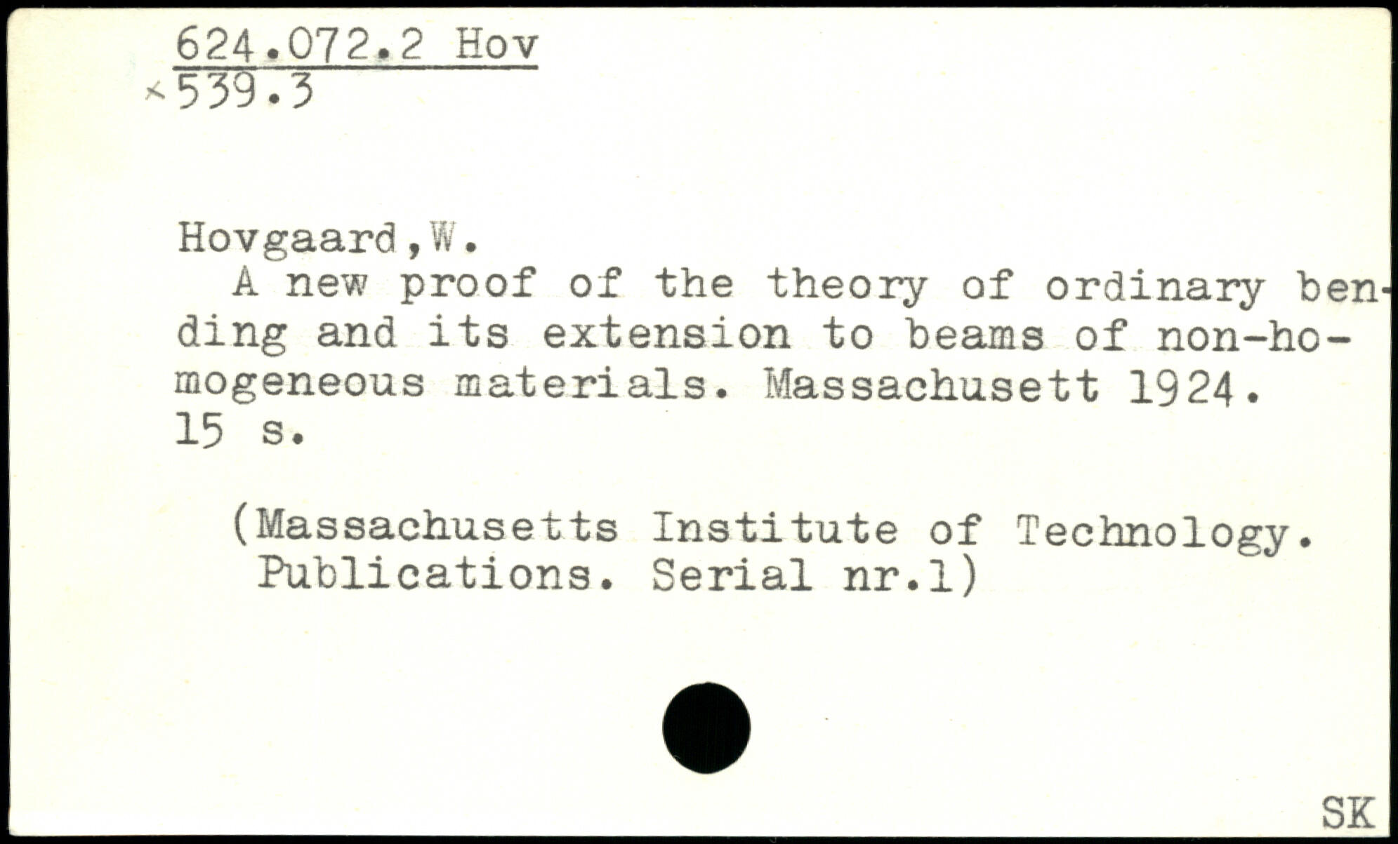 A new proof of the theory of ordinary bending and its extension to beams of non-ho-mogeneous materials. Massachusett 1924.