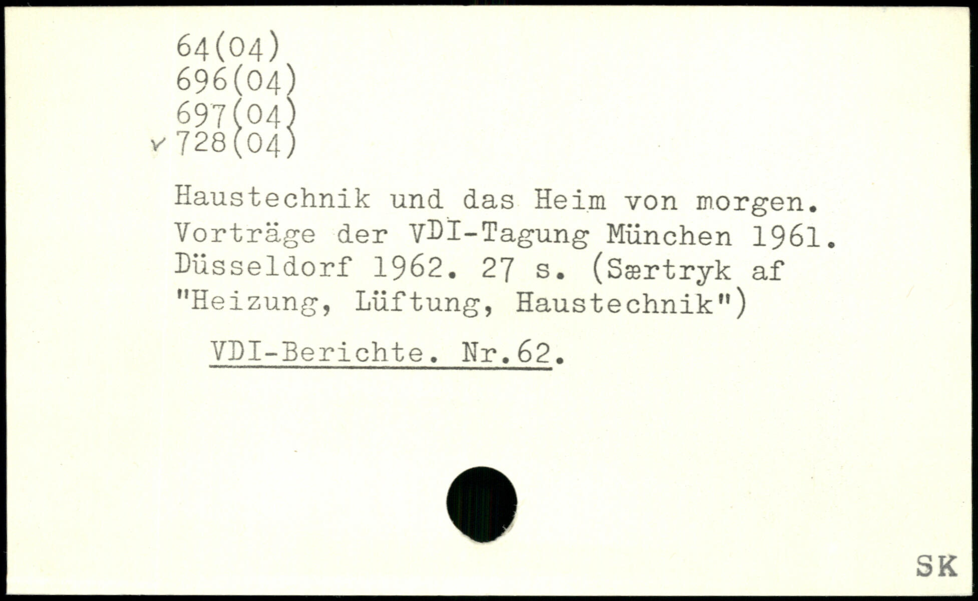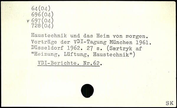 Haustechnik und das Heim von morgen. Vorträge der VHI-Tagung