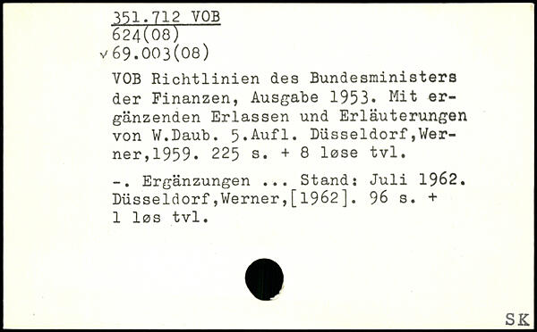 VOB Richtlinien des Bundesministers der Finanzen, Ausgabe 1953. Mit ergänzenden Erlassen und Erläuterungen von W.Daub.