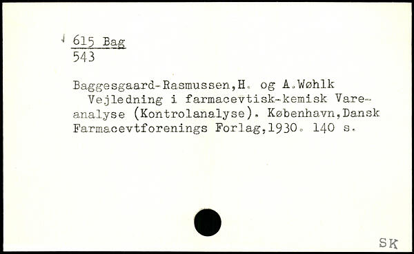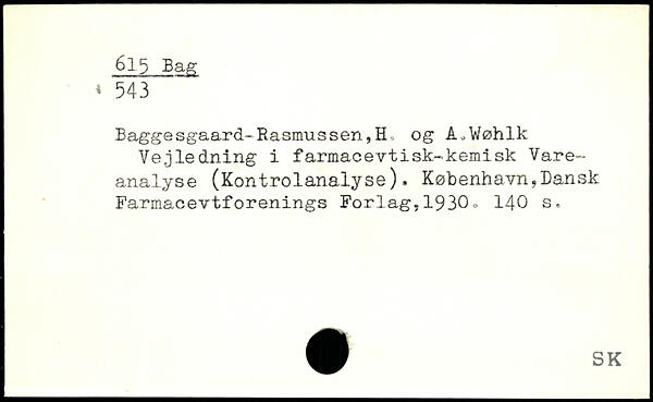 Vejledning i farmacevtisk-kemisk Vare-analyse (Kontrolanalyse).