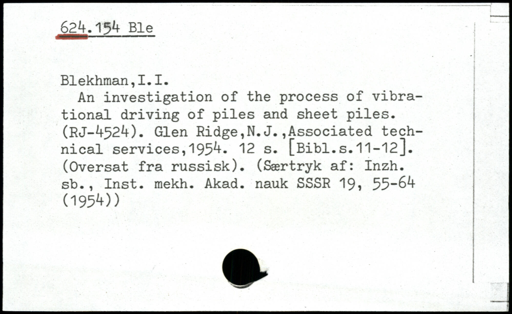 An investigation of the process of vibrational driving of piles and sheet piles. (RJ-.+52A). Glen Ridge,N.J.Associated technical services, 195.+-