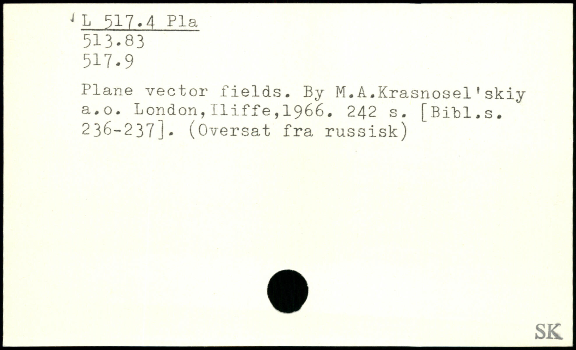 Plane vector fields. By M.Å.Krasnosel'skiy a.o.
