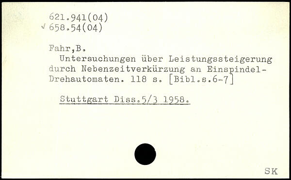 Untersuchungen über Leistungssteigerung durch Nebenzeitverkürzung an Einspindel-Drehautomaten.