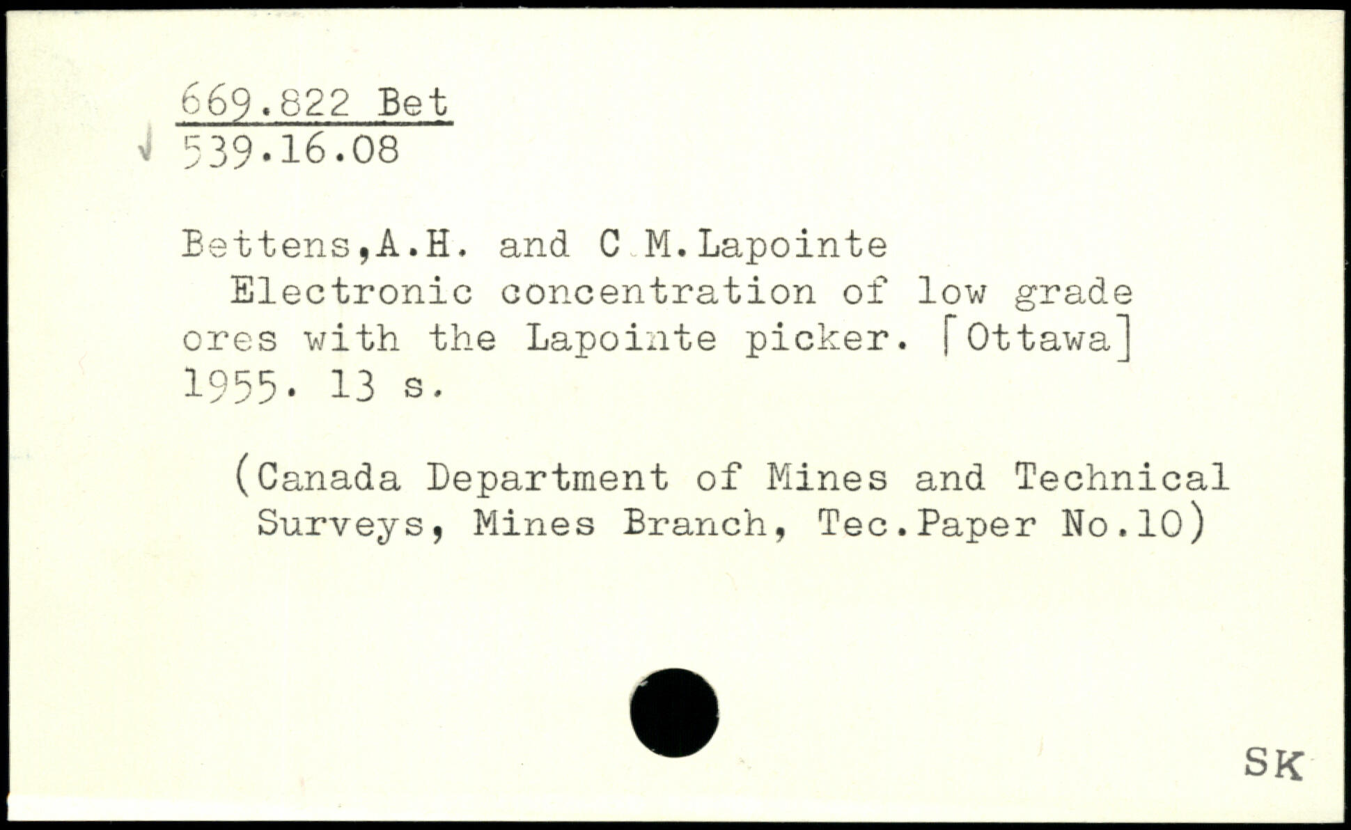 Battens,A.H. and C M.Lapointe Electronic concentration of low grade ores with the Lapointe picker. \
