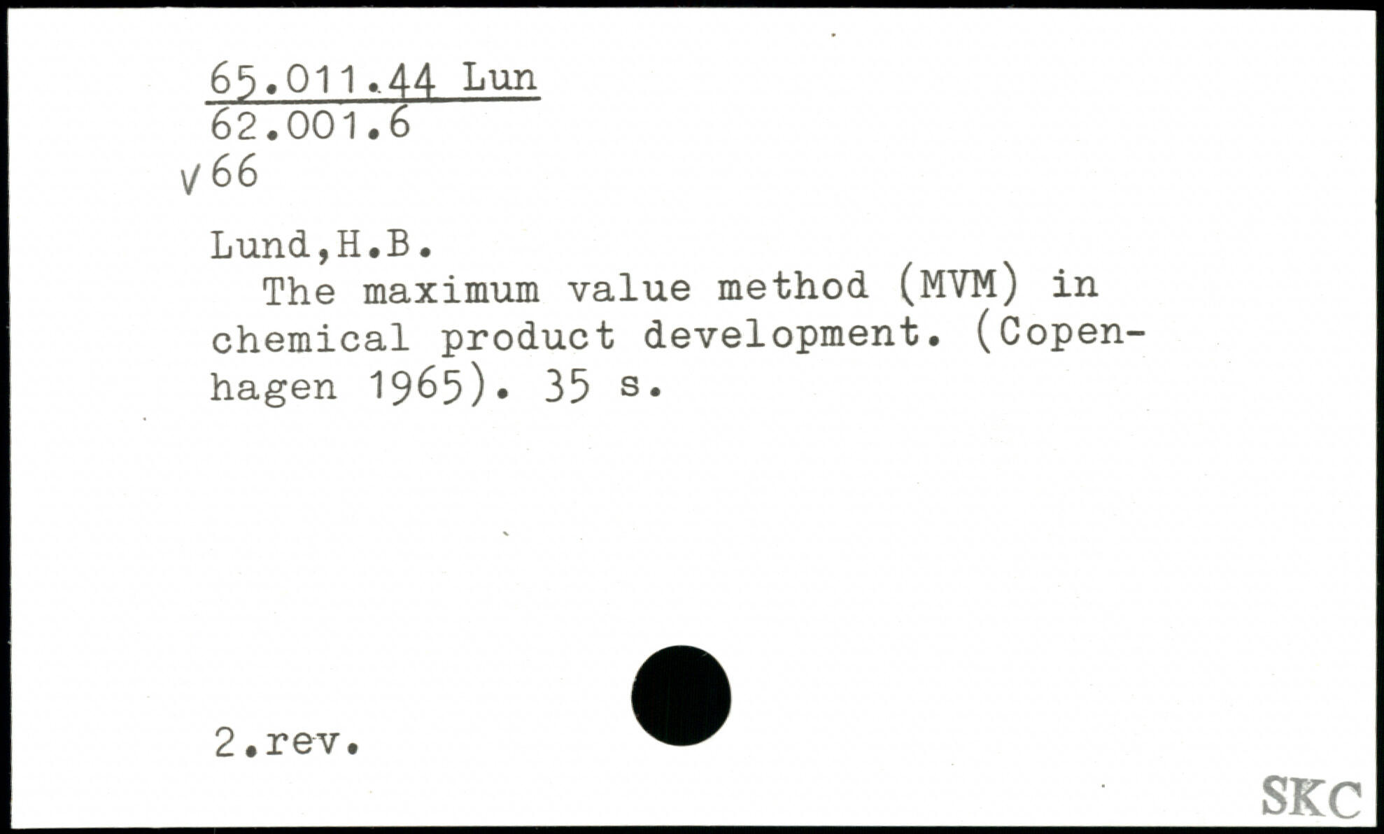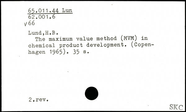 The maximum value method (MVM) in chemical product development. (Copenhagen 19^5)