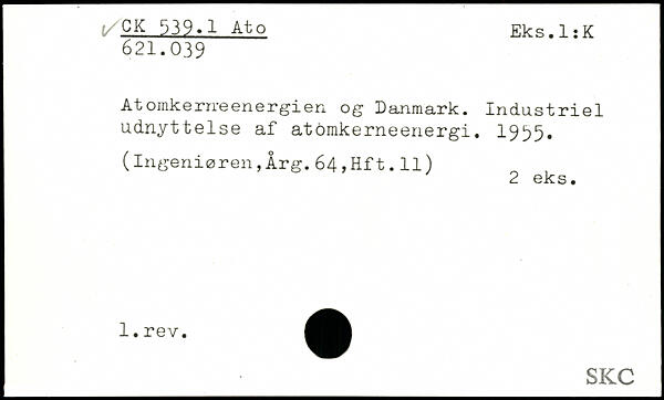 Atomkern-eenergien og Danmark. Industriel udnyttelse af atomkerneenergi. 1995,