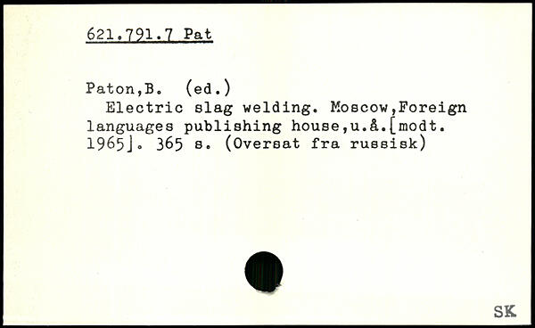 Electric elag welding. Moscow,Foreign languages publishing house,u.å.(modt. 1965jo