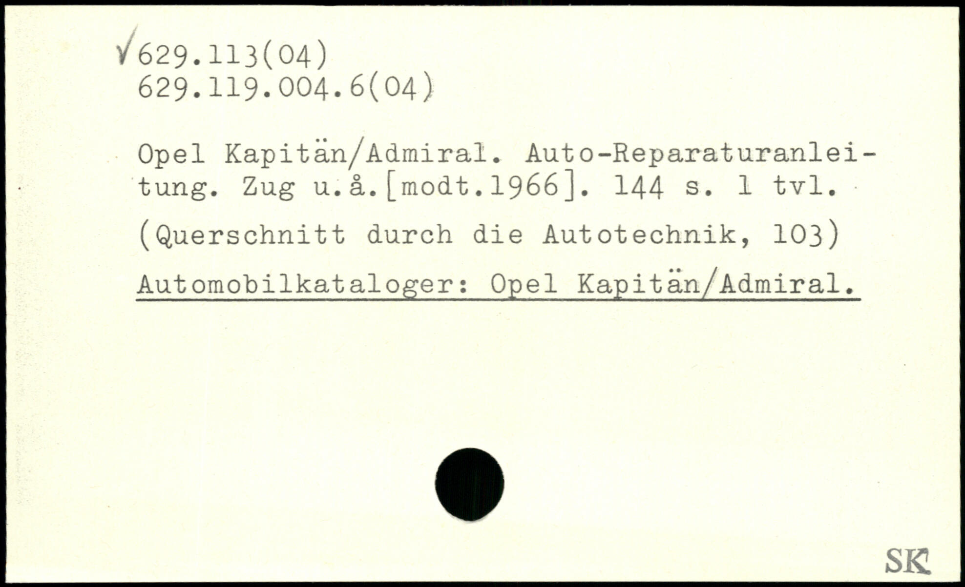 Opel Kapitän/Admiral. Auto-Reparaturanlei-tung. Zug u.ä.[modt.1966].