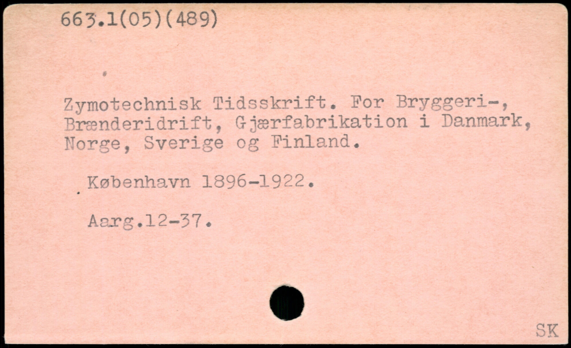 Zymotechnisk Tidsskrift. For Bryggeri-, Brænderidrift, G-jærfabrikation i Danmark, Norge, Sverige og Finland.