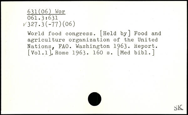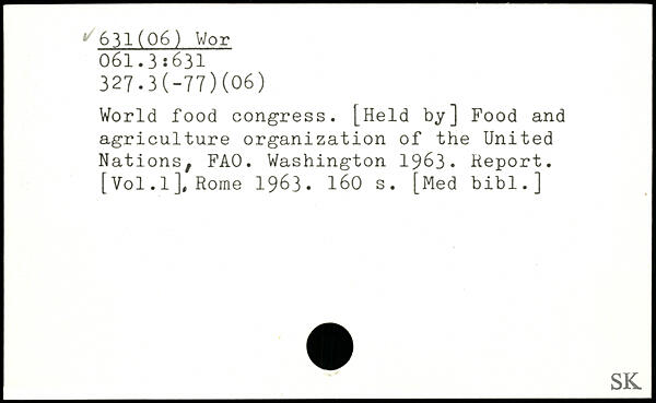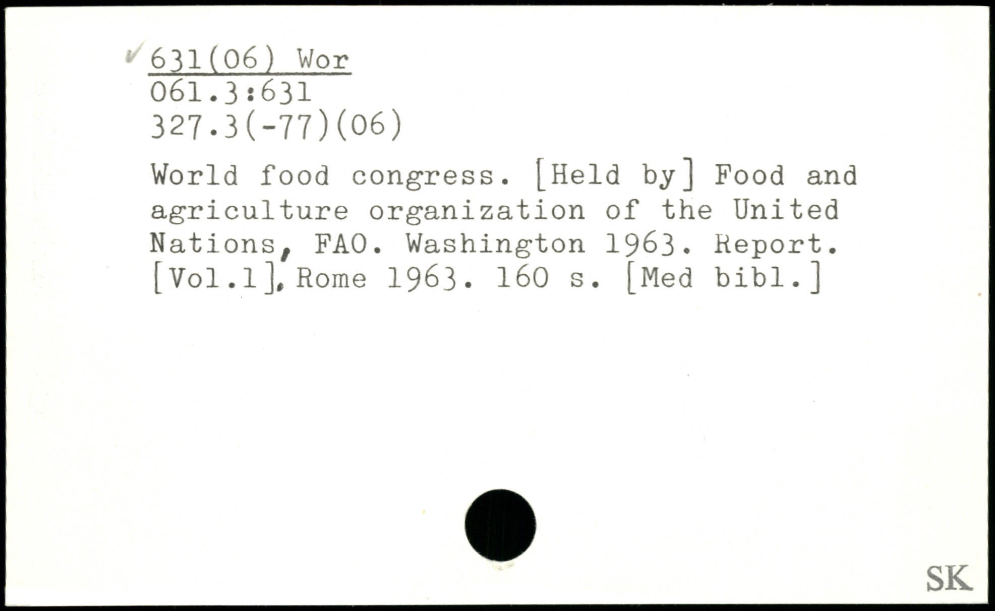World food congress. [Held by] Food and agriculture organization of the United Nations, FAO.