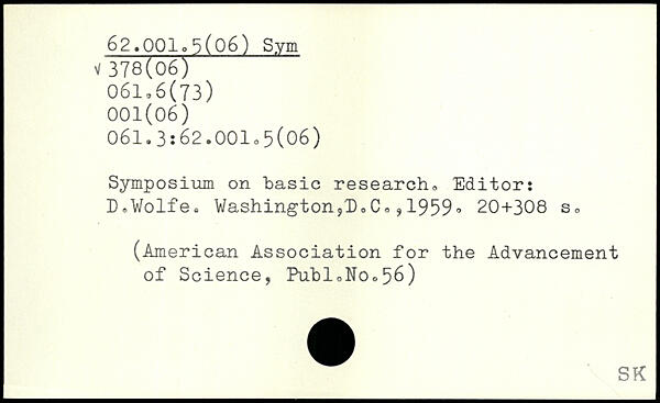 Symposium on basic research. Editor: D,Wolfe. WashingtonjDoCo,1959