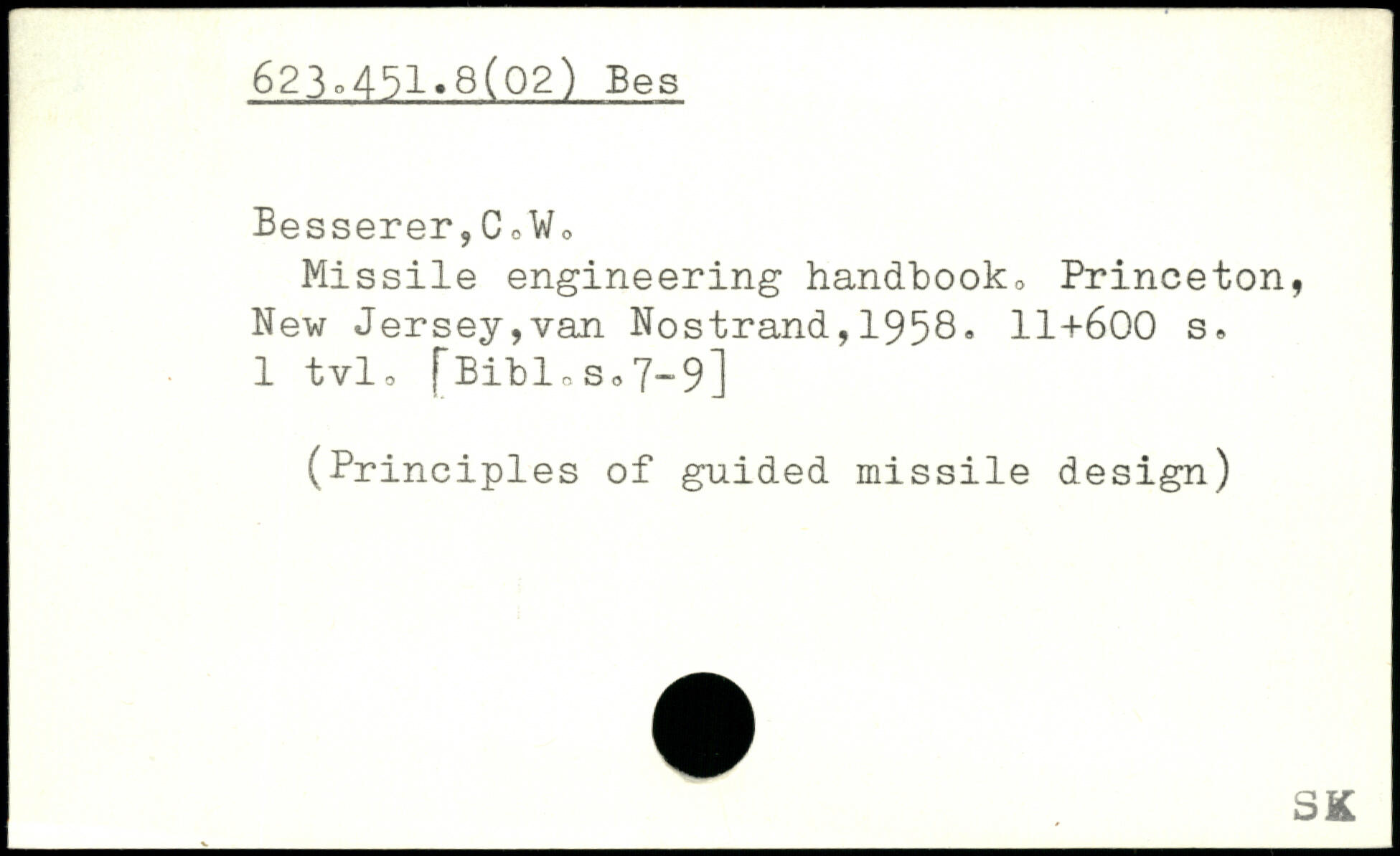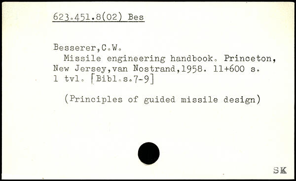 Missile engineering handbook Princeton, New Jersey,van Nostrand,1958.