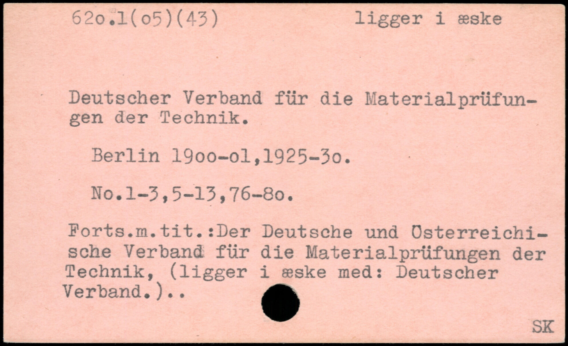Deutscher Verband für die Materialprüfungen der Technik. Berlin 19oo-ol,1925-3o. No.1-3,5-13,76-8o. Ports.m.tit.:Der Deutsche und Österreichische Verband für die Materialprüfungen der Technik, (ligger i æske med: Deutscher Verband.)..