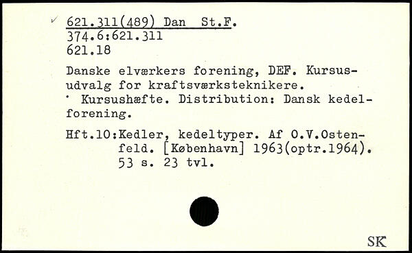 Danske elværkers forening, DEP. Kursusudvalg for kraftsværksteknikere. . Kursushæfte. Distribution: Dansk kedelforening. Hft.10:Kedler, kedeltyper. Af O.V.Osten-feld.
