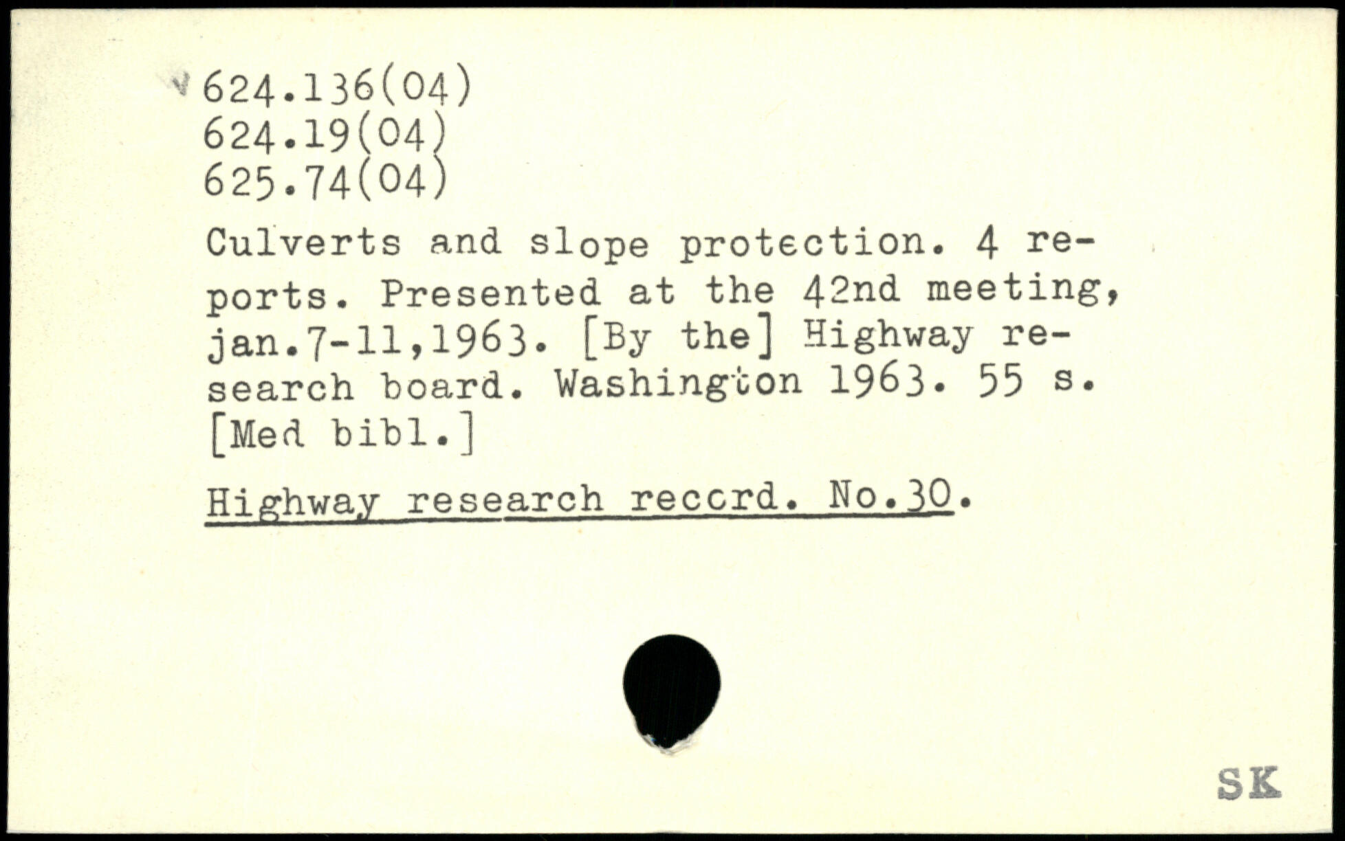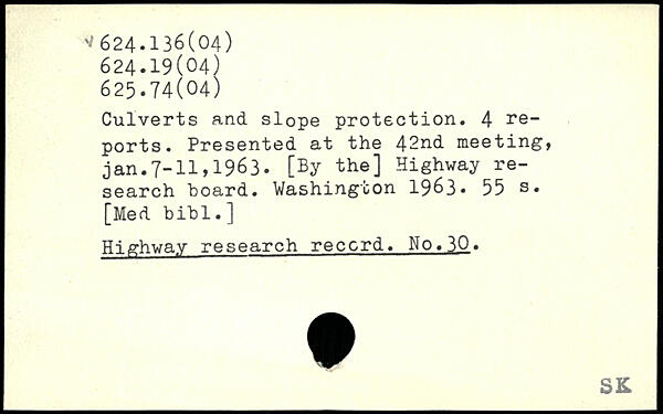 Culverts and slope protection. 4 reports. Presented at the 42nd meeting, jan.7-11,1963. [By the] Highway research board.