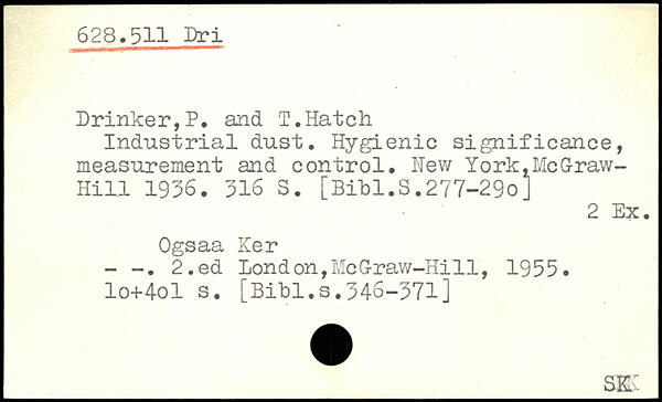 Industrial dust. Hygienic significance, measurement and control. Hew York,MeDraw-Hill 1936.