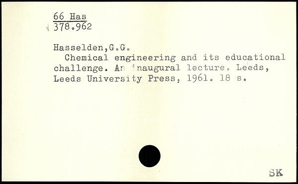 Chemical engineering and its educational challenge. Ar "naugural lecture.