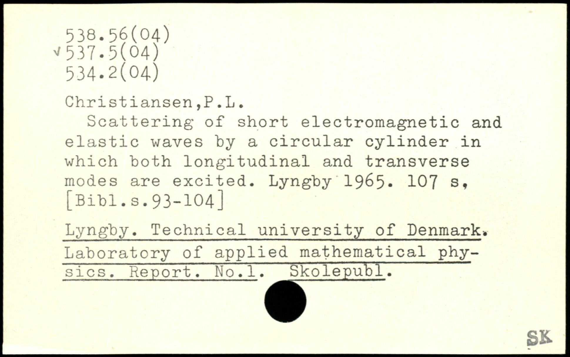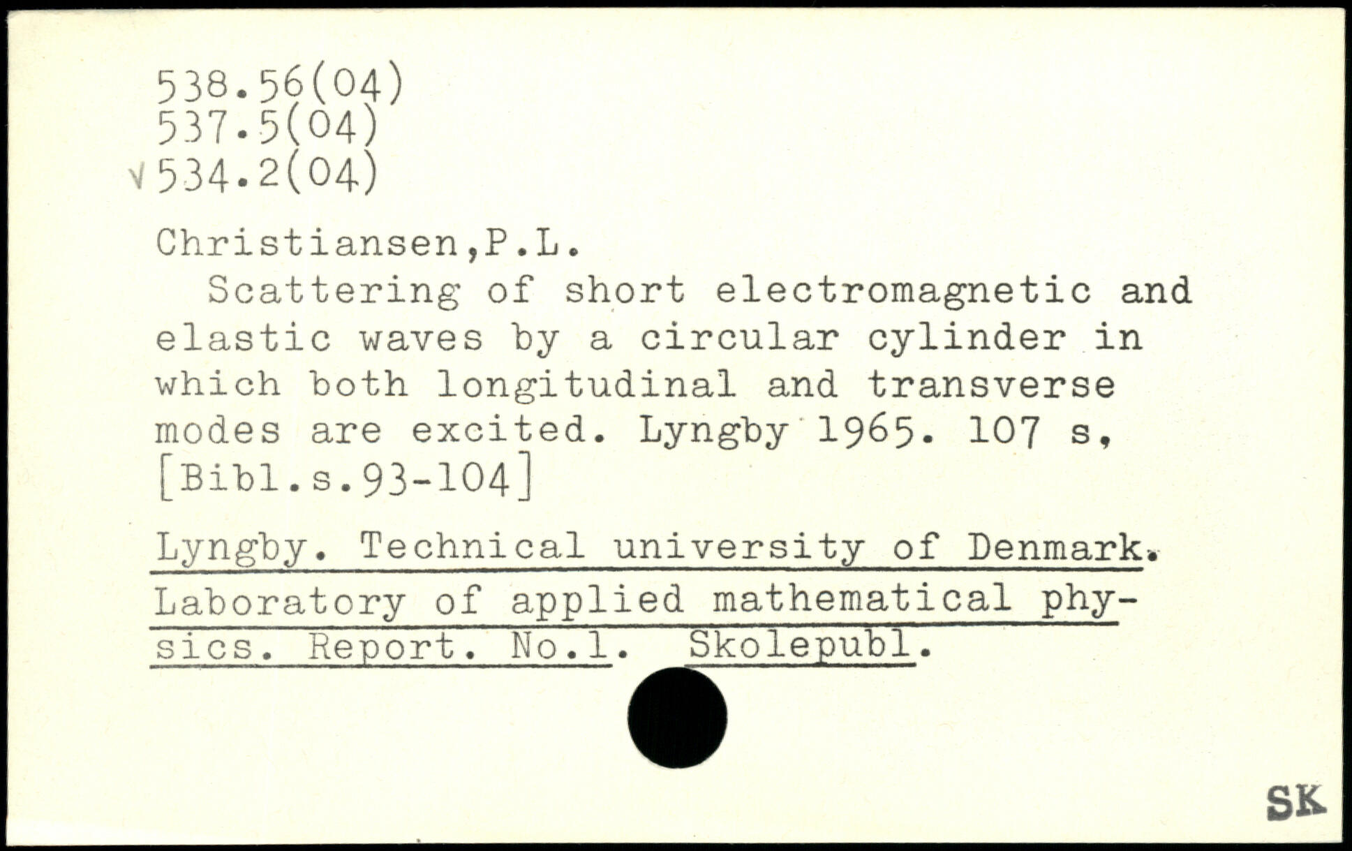 Scattering of short electromagnetic and elastic waves "by a circular cylinder in which both longitudinal and transverse modes are excited. Lyngby 1965.