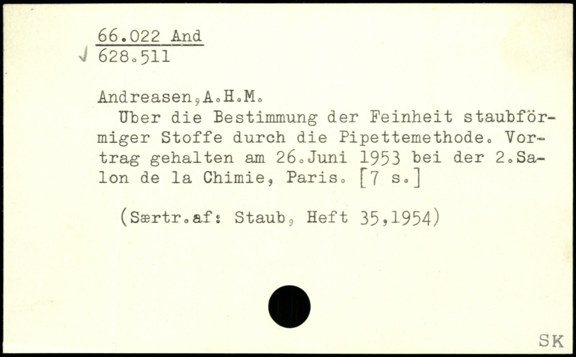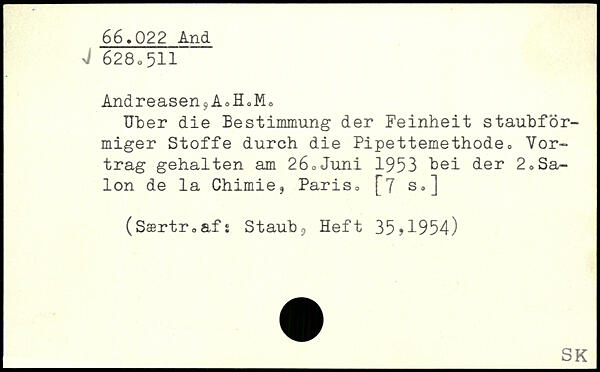 AndreaseriçAoHoMo Uber die Bestimmung der Feinheit staubförmiger Stoffe durch die Pipettemethode, Vortrag gehalten am 26<,Juni 1953 bei der 2,Salon de la Chimie, Paris, [
