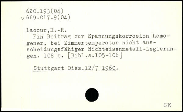 Ein Beitrag zur Spannungskorrosion homogener, bei Zimmertemperatur nicht aus-scheidungsfähiger Nichteisenmetall-Legierungen