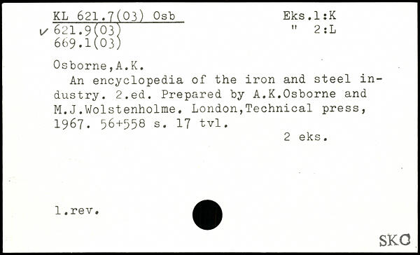 UDK: 621.7(03) Osb, 621.9(03), 2, 669.1(03)