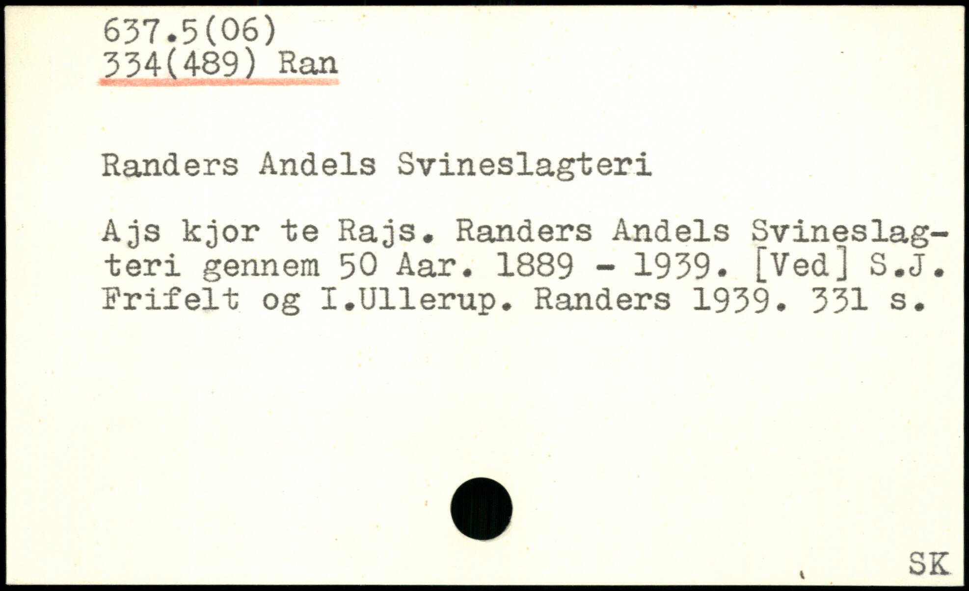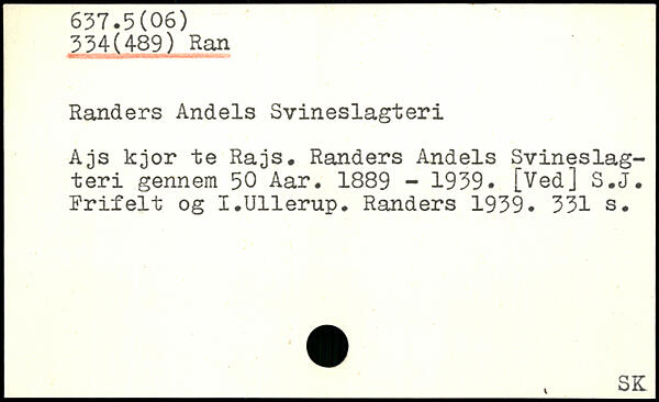 Randers Andels Svineslagteri Ajs kjor te Rajs. Randers Andels Svineslagteri gennem 50 Aar. 1889 - 1939. [Ved] S.J. Frifelt og I.Ullerup. Randers 1939.