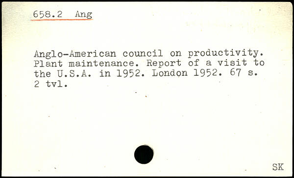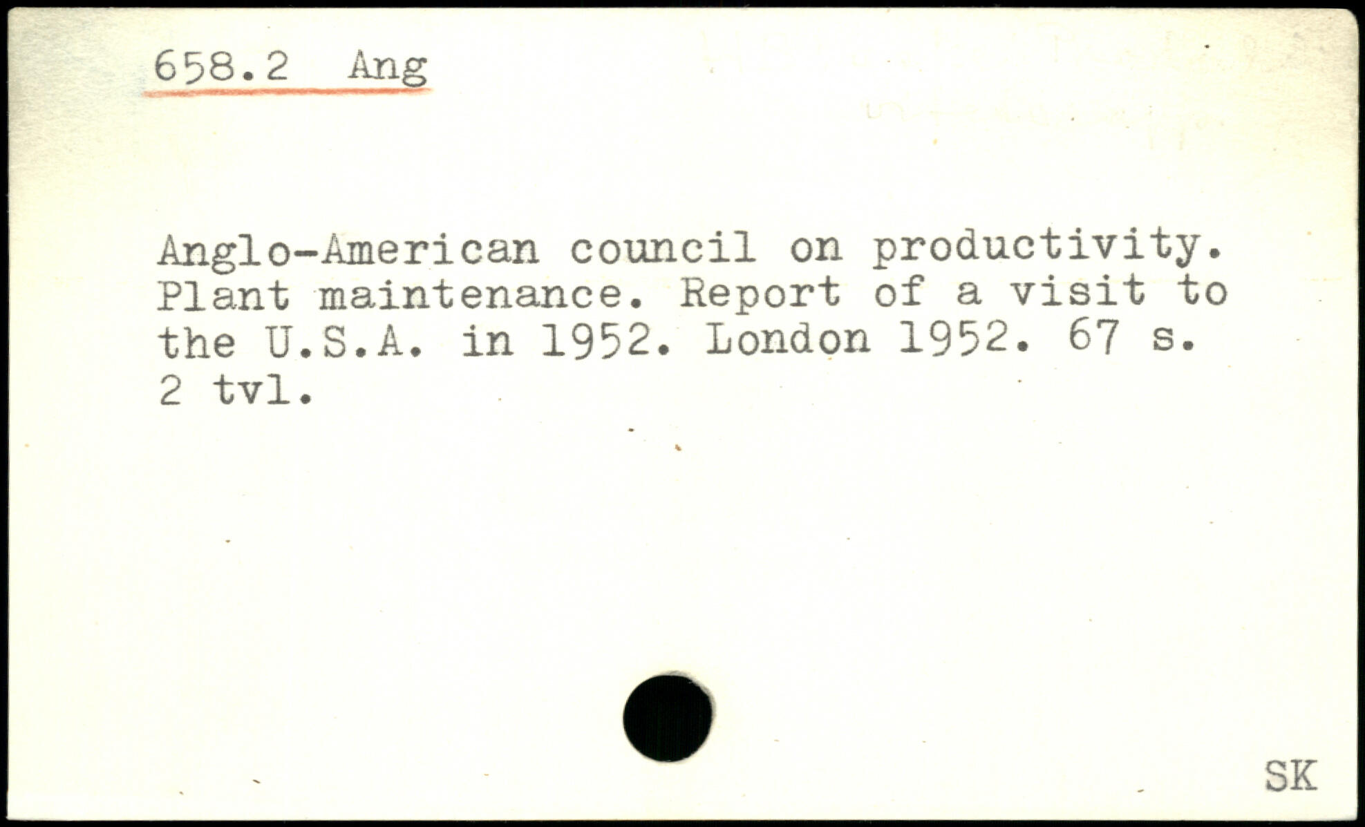 Anglo-American council on productivity. Plant maintenance. Report of a visit to the U.S.A. in 1952.