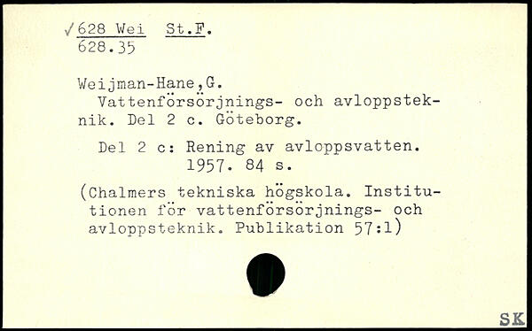Wei jman-Hane,G. Vattenförsörjnings- och avloppsteknik. Del 2 c. Göteborg. Del 2 c: Rening av avloppsvatten. 1957.