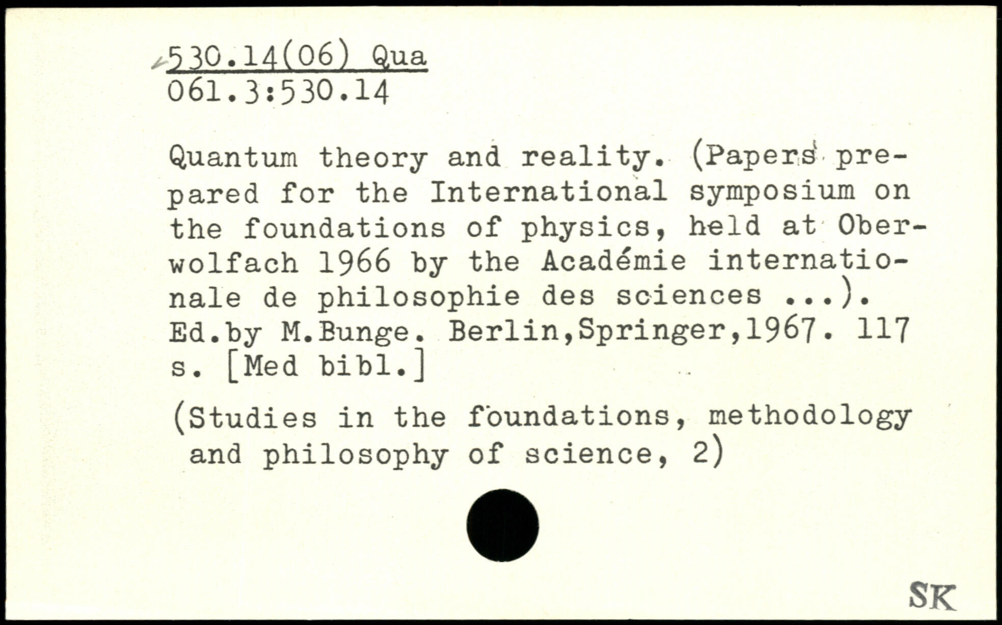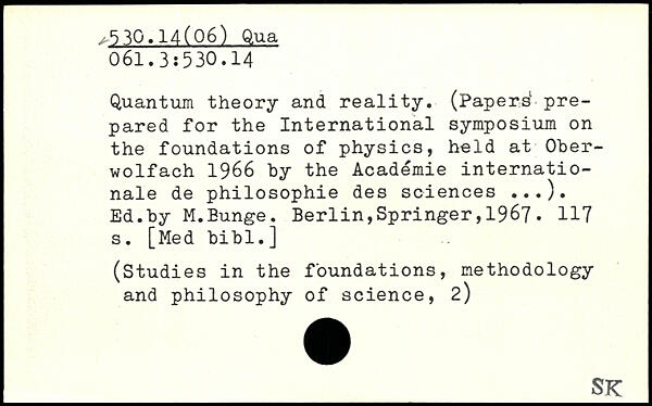 Quantum theory and reality. (Papers1 prepared for the International symposium on the foundations of physics, held at Ober-wolfach 1966 by the Academie Internationale de philosophie des sciences ...). Ed.by M.Eunge.
