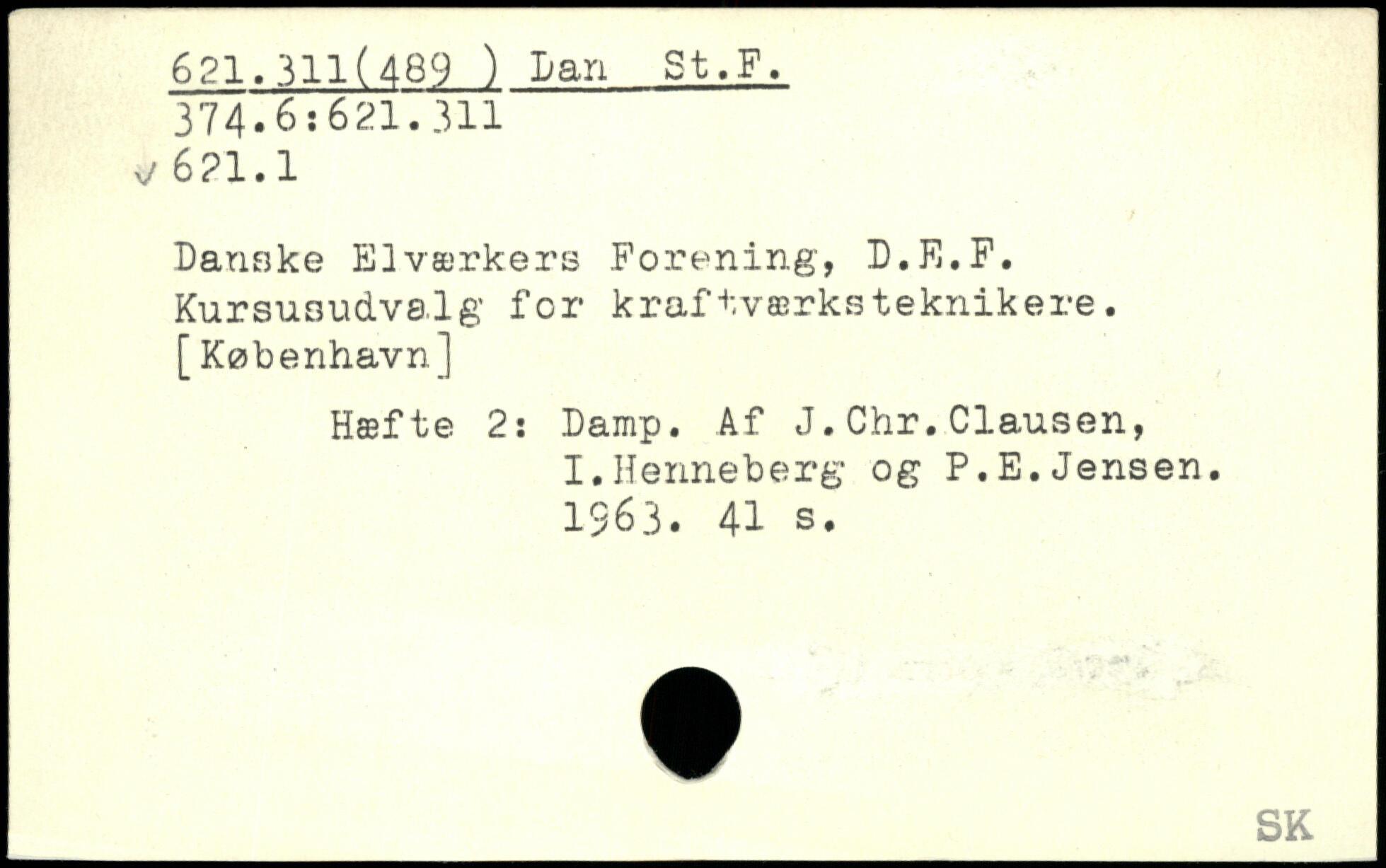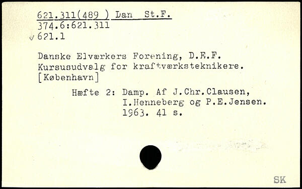 Danske Elværkers Forening, D.E.F. Kursuoudvalg for kraftværksteknikere.